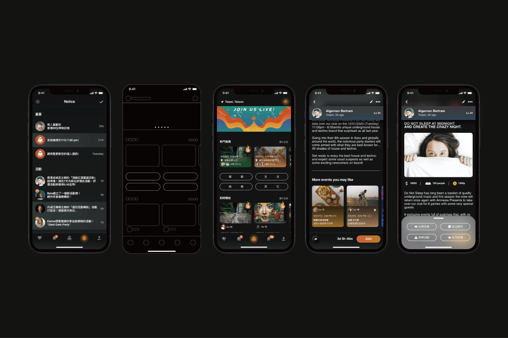 The design team integrated the design appeal for the App function from the JoLive, the interface creative we imported into the elements from the brand visual design to create an innovative social platform.