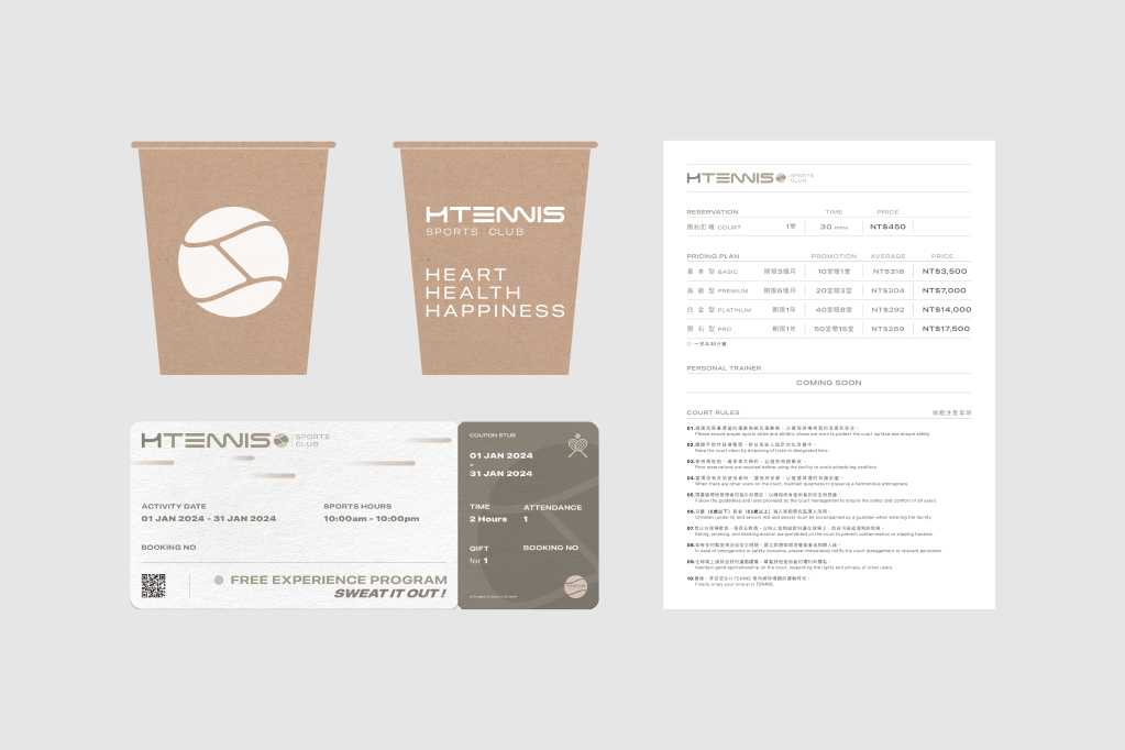 H Tennis’s brand concept is from the heart, health and happiness by yourself and SWEAT IT OUT! The business owner hopes to create a new tennis pop sports culture in Taiwan. The H Tennis is committed to offering high-class batting sports space.