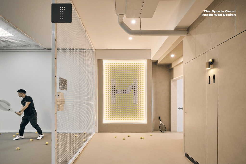 Extensibility of the brand visual into the sports court image wall design, the creative concept was from the infinitely expandable of the sports imagery. The image wall used an arrangement of several balls to create the “H" alphabet brand logo. Through the lighting effect, the three-dimensional sense of the ball is presented. The visual perfectly blends into the texture of the space design.