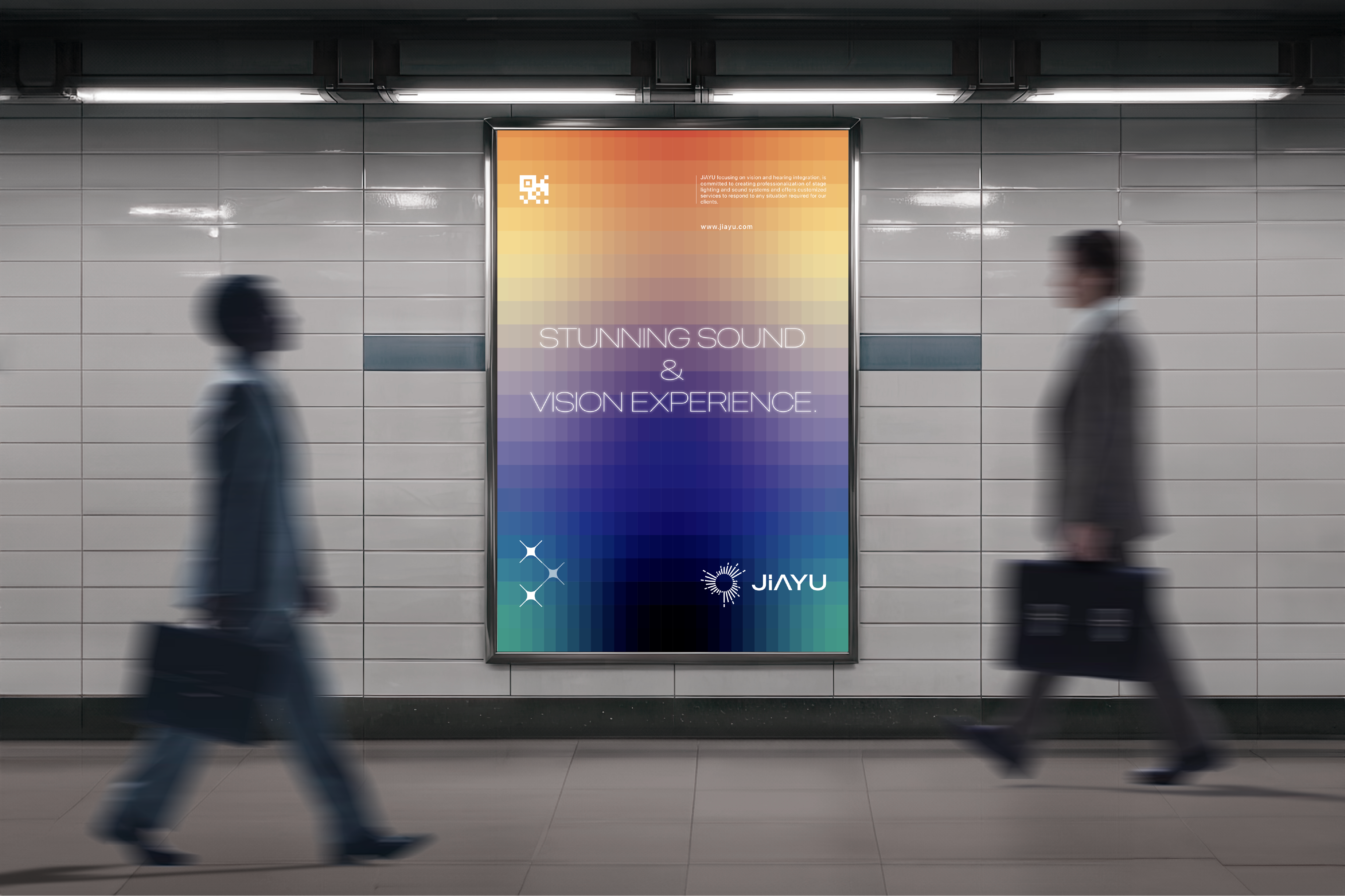 Dynamic sense is the secondary graphic for the JiAYU brand. The repeatability rectangle graphic is a creative element of the sound. The designer used gradient colours to match the sense of high-tech and stage lighting concept visual results. And improve brand Know-how in marketing development.