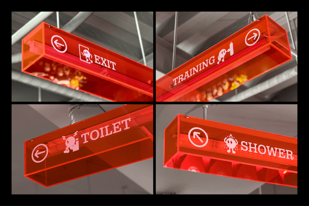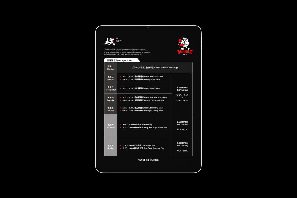 Creating possibilities for a diverse brand identity, we developed the character “Boxing Spirit” as the core representative of the “ZhiGe” brand. The creative identity of “Boxing Spirit” was also extended into the design concept of environmental guidance icons, effectively enhancing both functionality and creativity in assisting students with spatial navigation within the dojo.